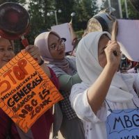 Ratusan ibu-ibu mengadakan aksi simbolik dengan membunyikan peralatan masak sebagai bentuk protes terhadap program Makan Bergizi...